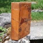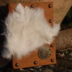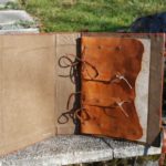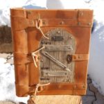 Album ancien « celtique » divers cuirs vieillis et papier imitation parchemin en 1ères pages intérieures, avec empreintes celtiques et clous patinés.