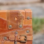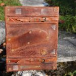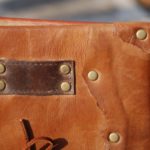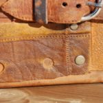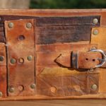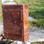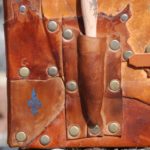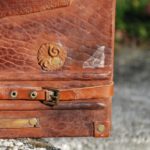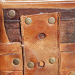 Fermeture par boucles patinées et liens de cuir.4 renforts d'angle en cuir.