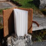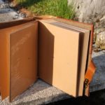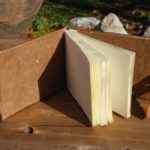 Carnet recouvert tissu imitation cuir peau couleur marron clair.