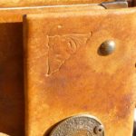 Les pages sont assemblées avec 3 vis cachées par une bande de cuir maintenue en place par 3 attaches en lacet cuir (ce qui permet de changer les pochettes plastiques abîmées). Album maintenu fermé par 1 languette de cuir aimantée.