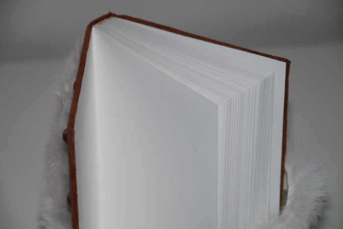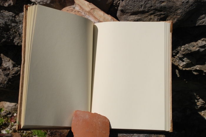 Capacité de 192 pages papier vergé ivoire 90g avec tranchefile. -