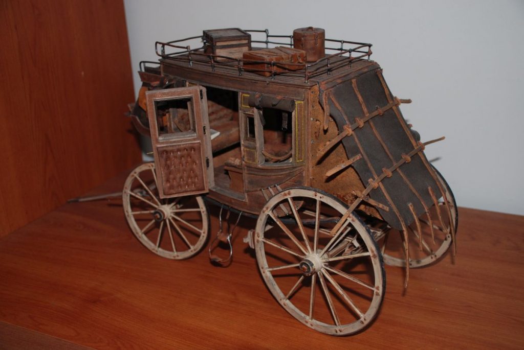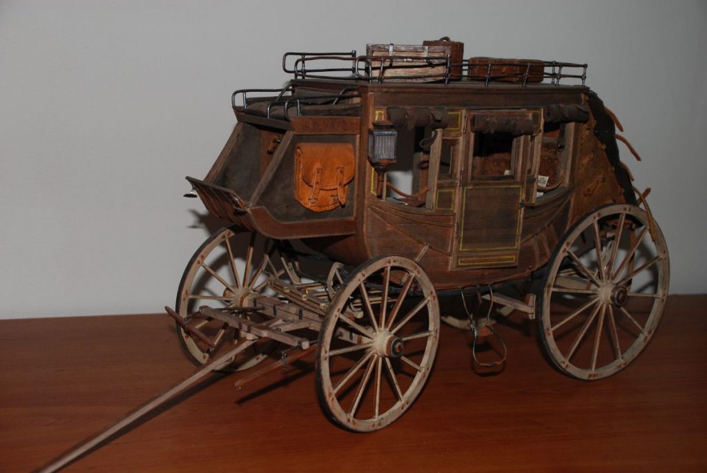 Après avoir construit des maquettes de voiliers en bois, cela faisait longtemps que l’envie me taraudait de réaliser autre chose, une diligence …mais je voulais faire une finition «maison», à l’ancienne, à l’image des vieux chariots que j’avais pu admirer lors de mes voyages aux USA !